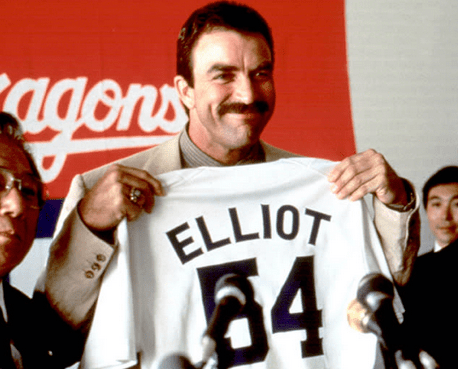 By 1992, Selleck had the title role of Jack Elliott in “Mr. Baseball” and got to perform before fans at Yankee Stadium. As an aging New York Yankees first baseman about to be replaced by upstart Ricky Davis (played by Frank Thomas), Elliott went to play for the Japanese Central League’s Chunichi Dragons.Sellect got to wear what looked like a cross between the Old-English Detroit “D” an a cheesy Dodgers Little League cap. The film tried to catch the wave of baseball films in 1989 that included the success of “Major League.”