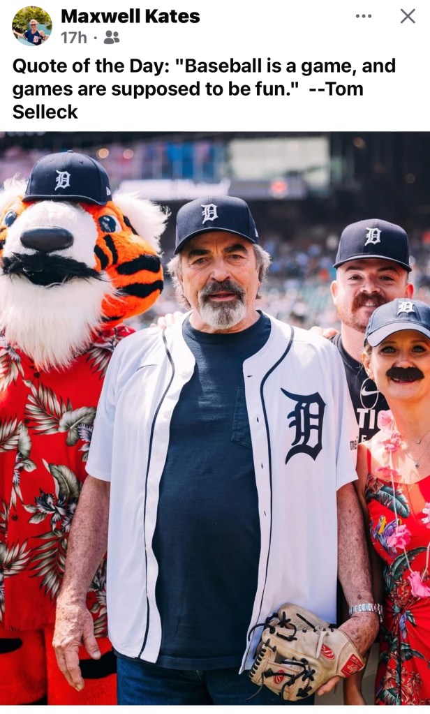 In a profile it crafted, it starts by noting Selleck was born in Detroit in 1945, at a time when his father, Robert, worked in the U.S. Army as a mechanic on B-29 bombers. Detroit’s Tigers were Selleck’s favorite team, and outfielder Al Kaline his favorite player.