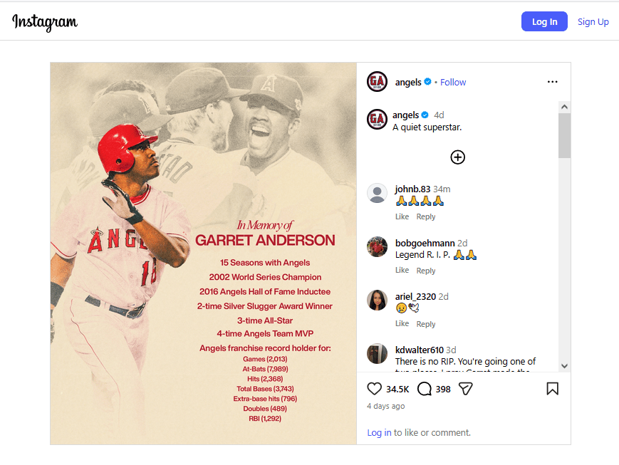 Best known: The 15 seasons he spent in three different variations of the Angels’ franchise existence speaks to the fact of his longevity at an odd time in the team’s identity crisis. The Kennedy High of Granada Hills standout was picked by the team in the fourth round in 1990 and five years later was second in the AL Rookie of the Year voting (.321 in 106 games, 16 HR, 69 RBIs). The three-time AL All Star was MVP of the 2003 game when hit a two-run homer and a double in the eighth during a 3-for-4 night to lead to an AL comeback win. Anderson led the league in doubles with 56 in their World Series title year of 2002 and 49 the next season. He also won two Silver Slugger Award. He finished his 17-season career wearing No. 9 for the Dodgers in 2010. Voted into the Angels Hall of Fame in 2016, he remains the franchise career leader in games, hits, RBIs and at-bats, and third in overall average. With his death at age 53 in the spring of 2026, he was remembered by columnist Mark Whicker: “He didn’t really mind being misunderstood. For one thing it gave him room to take care of business. There was no way he’d be a team spokesman. Too presumptuous. But the closer people got to him, the more they heard his incongruously throaty laugh and heard his wide range of opinions. He was a cheery skeptic about the analytics “revolution” and never abandoned his method of swinging hard at the first thing he liked, yet striking out only 13.3 percent of the time. Fifty-one percent of his batted balls went up the middle, just like the coaches tell you.” Not well remembered: Anderson is the first in MLB history to win a World Series title, a Home Run Derby and All-Star Game MVP in the span of a year (actually, nine months).