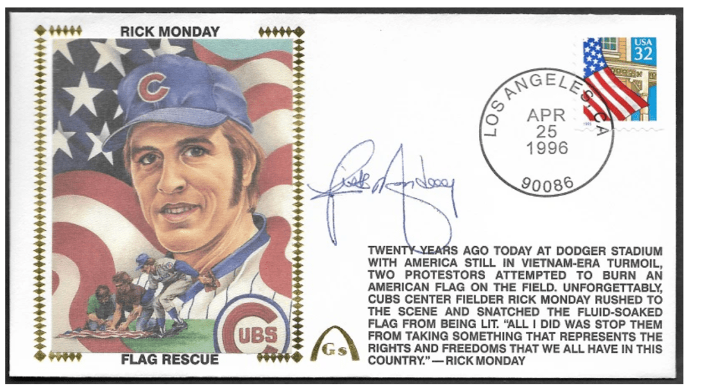 “Now we’ve got three great patriots — George Washington, Abraham Lincoln, and Rick Monday,” said Cubs teammate Jose Cardinal as mentioned in the game’s SABR recap.