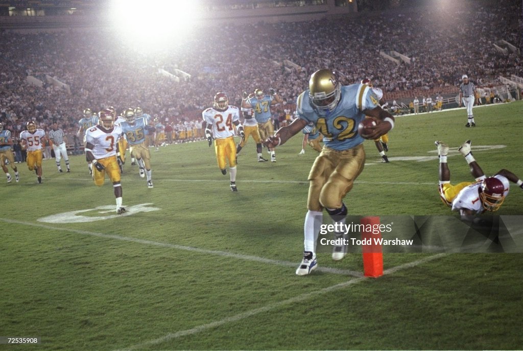 Best known: The Bruins’ program record-holder in career touchdowns (55) also piled up the msot TDs in a season for the program — 26 in ’77, when he was first-team All-American and All-Pac-10, collecting 1,282 yards rushing and seven 100-yard rushing games. His TD marks were also conference records at the time. His 3,140 yards amassed over five seasons and 330 points are Top 10 in the program. In 1993, he became the first UCLA true freshman to lead UCLA in rushing (563 yards) and also tied for the team lead in rushing touchdowns with five. A 2019 inductee into the UCLA Athletic Hall of Fame,